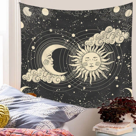 La tapisserie solaire pour l’esthétique de la chambre est en polyester de haute qualité, durable et léger. Texture douce, s’affaissant bien, adaptée pour être accrochée au mur. C’est un matériau parfait pour la décoration intérieure et d’autres utilisations.Nous proposons deux tailles, vous pouvez choisir en fonction de vos Cette tapisserie soleil et lune est conçue avec une paire de soleil et lune esthétiques qui sont mis en valeur par des nuages, et les deux coins sont parsemés respectivement du soleil et de la lune. Dans le même temps, la couleur générale de la tapisserie adopte un brun doré spécial, ce qui peut rendre votre pièce plus mystérieuse et psychédélique.Cette tapisserie esthétique soleil et lune est parfaite pour le salon, la chambre, le dortoir, etc. Vous pouvez l’utiliser comme couverture murale, housse de canapé, tapis de yoga, nappe, présentoir photo, couvre-lit, serviette de plage, etc. au. Cela peut également être un cadeau magnifique et unique pour vos amis ou votre famille. Veuillez l’accrocher avec des punaises décoratives ou des punaises. Lavable à la main et suspendre pour sécher est recommandé. Veuillez utiliser un détergent doux avec de l’eau froide et ne pas utiliser d’agent de blanchiment. Vous pouvez le repasser à basse température, alors ne vous inquiétez pas des plis.