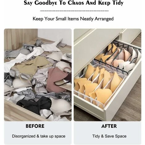 【GRANDE CAPACITÉ】: Conteneur de sous-vêtements de grande capacité en trois pièces, très approprié pour ranger soutiens-gorge, sous-vêtements, chaussettes, etc., après stockage, mettez-le dans un placard ou un tiroir pour rendre la pièce plus ordonnée【COSTUME À TROIS PIÈCES】:la boîte à sous-vêtements Faffooz contient deux boîtes de soutien-gorge à 6 compartiments, deux boîtes à culottes à 7 compartiments et deux boîtes de rangement à 11 compartiments, un total de 6 pièces, qui peuvent répondre pleinement à vos besoins de stockage de sous-vêtements【TISSU DE HAUTE QUALITÉ】: Utilisation d’un tissu Oxford de haute qualité et d’un tissu en maille de nylon, doux et respirant, stockage à long terme sans odeur particulière, finition soignée, durable, pas facile à endommager et à déformer.【SAC DE RANGEMENT PLIABLE】: Sac de rangement pliable pour vous aider à trier les articles et à utiliser pleinement l’espace. La boîte de rangement des sous-vêtements comporte de nombreuses grilles, qui peuvent trier et placer beaucoup de sous-vêtements, afin que vous puissiez trouver plus facilement les sous-vêtements que vous voulez【FACILE À NETTOYER】: La boîte de rangement pour sous-vêtements Faffooz peut être lavée ou lavée en machine, ce qui peut toujours garder votre boîte de rangement propre et hygiénique, afin que vous puissiez mieux ranger vos sous-vêtementsDimensions du colis