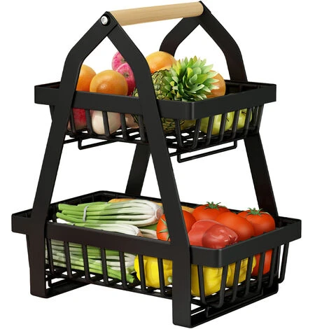 Aucun assemblage nécessaire, ce panier de fruits a deux étages, une poignée en bois et un panier en acier stable.