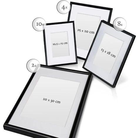 Contenu de la livraison : 10x 10,5x15cm / 8x 13x18cm / 4x 15x20cm / 2x 20x30cm cadres photo