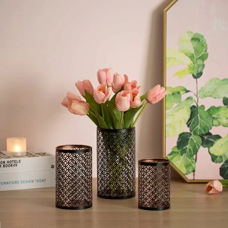 【Ensemble de bougeoirs élégant】 : l’ensemble de bougeoirs creux en cuivre de taille assortie, fabriqué en métal de haute qualité et peint avec un revêtement noir, facile à assortir à votre style de décoration d’intérieur.