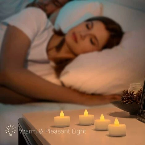 - Ambiance chaleureuse pour des heures de détente : Lot de 24 bougies chauffe-plat à LED avec lumière vacillante – Presque comme une vraie bougie, alternative sûre aux vraies bougies chauffe-plat – Pile de qualité pour un éclairage de longue durée, pas seulement en hiver.