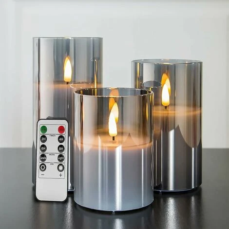 3- Pack Candle Gift Set – Joliment emballé avec 3 bougies en verre gris, 3 « de diamètre, 4/5/6 » de haut, 1 télécommande, ces belles bougies grises sont parfaites pour la maison, la table, la date, et aussi comme cadeau de vacances h comme Noël