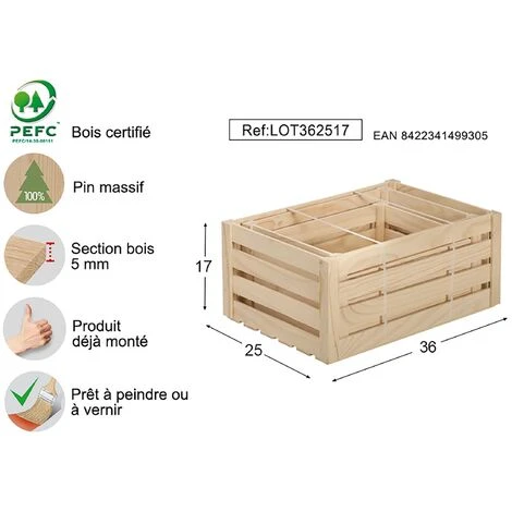 | Composition | Lot de 3 caisses en bois de taille différente |
