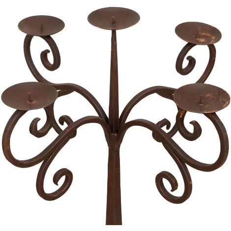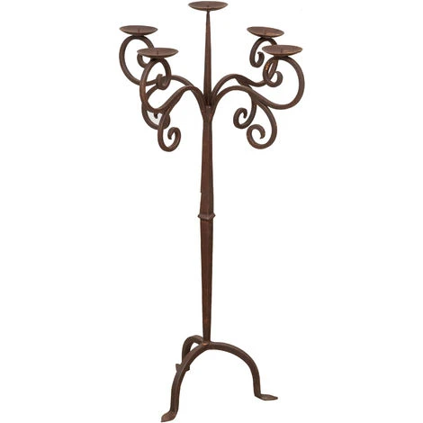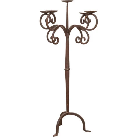 Chandelier en fer forgé sur pied de dimensions longueur 48 cm, profondeur 48 cm, hauteur 93 cm, finition rouille ancienne. Toutes les tailles se réfèrent aux dimensions maximales de l’article