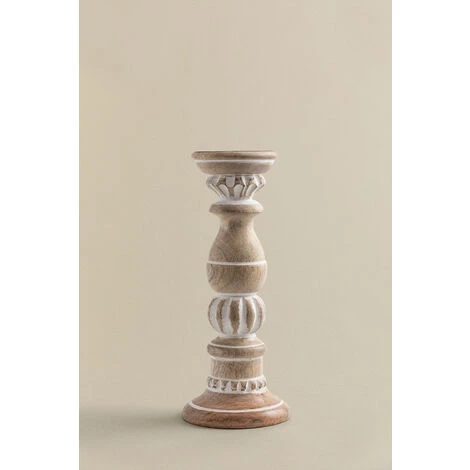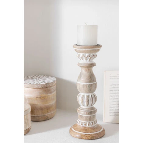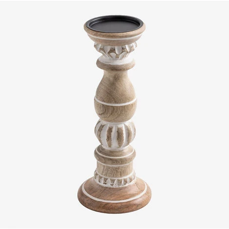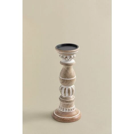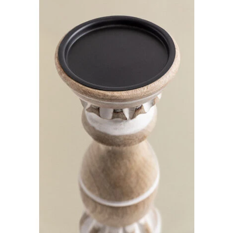 Le Bougeoirs en Bois de Manguier Taiz aux motifs géométriques se distingue par son raffinement et son design. Fabriqué en bois de manguier et en fer, il offrira une classe et, à son tour, une résistance enviable. Ajoutez vos bougies préférées et créez une ambiance romantique et intimiste dans votre intérieur dans le plus pur style Boho. Vous pouvez le mettre dans le salon, la salle à manger, le hall ou même dans votre chambre.Par sa fabrication artisanale, chaque pièce est unique. Les produits peuvent présenter des marques différentes, et leurs propres irrégularités , ainsi que les mesures et/ou les finitions peuvent subir des variations par rapport à l’image du modèle qu’ils affichent. Pour un bon entretien, nous vous recommandons de le nettoyer avec un chiffon humide, en évitant l’utilisation de produits chimiques. Dimensions (Hauteur x Largeur x Profondeur): ∼31 cm x ∼12,5 cm x cm IMPORTANT : Le service standard porte-à-porte ne comprend pas la livraison et la collecte des marchandises au domicile du client, qui sont à la charge de ce dernier. Il est possible que le livreur aide volontairement à la livraison de la marchandise (ceci est totalement volontaire pour le livreur et la société de transport et ne relève pas de la responsabilité de Sklum).L’assemblage n’est pas non plus inclus.