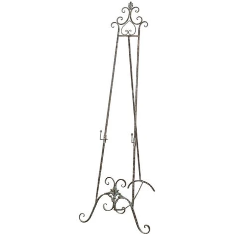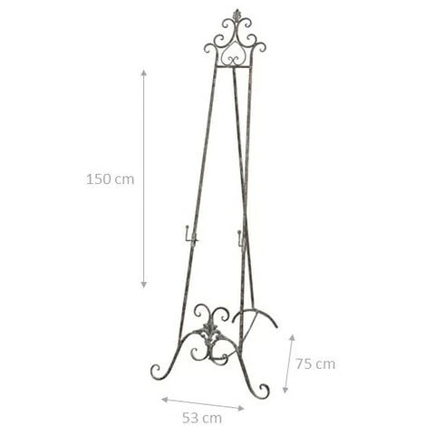 Matériel: fer forgé Taille: L53xL96xH150 cm- Support de cadre en fer forgé avec finition rouille antique. Chevalet Trépied en Bois Support Display pour Photo Carte-nom Peintures. Peut être utilisé pour afficher des dessins, des photos, des affiches, des photos publicitaires. Idéal pour peindre, dessiner et exposer des pièces.Trépied élégant, pratique et stable. Grâce à sa polyvalence, il est également idéal comme porte-menu ou pour les expositions, les vitrines et les galeries. Idéal pour les artistes professionnels, les écoles, les étudiants en art et tous les autres amateurs d’art. Le chevalet pourrait être utilisé comme décorations de table et informations sur le plan des sièges pour les mariages, fêtes et célébrations. Ce chevalet est parfait pour l’endroit de numéro de table de mariage, la carte de nom, les mini peintures, les livres, les photos, le téléphone portable ou toute autre chose que vous pouvez vouloir montrer. Toutes les mesures se réfèrent à la taille maximale de l’article.