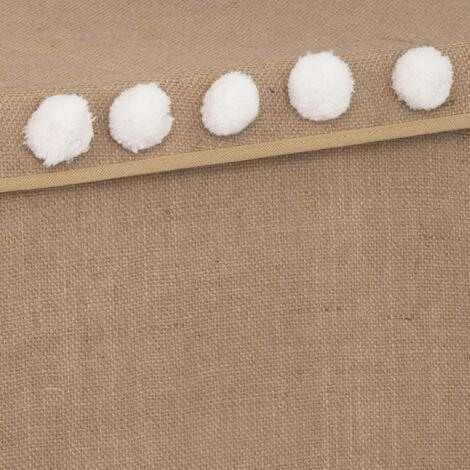 Ce rangement sobre et fonctionnel pour la chambre de votre enfant aura tout pour vous plaire. Destiné à vos bambins, ce coffre à jouets avec couvercle en intissé jute sera un complément de rangement .Ce design tout en simplicité pour chambre de votre enfant ajoutera une touche de sobriété à la pièce, tandis que. les pompons apporteront de la douceur à l’ensemble.Il permettra à votre bout d’chou de ranger tous ses jouets. Vous pourrez également vous en servir pour stocker vos textiles. Il dispose de 2 poignées ce qui vous permettra de le déplacer sans aucunes difficultés et de le plier si vous n’en avez pas. besoin.Associez cet article à d’autres accessoires en jute, comme un panier de rangement, un tapis en jute. Vendu à l’unité.