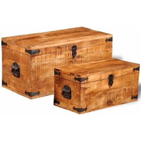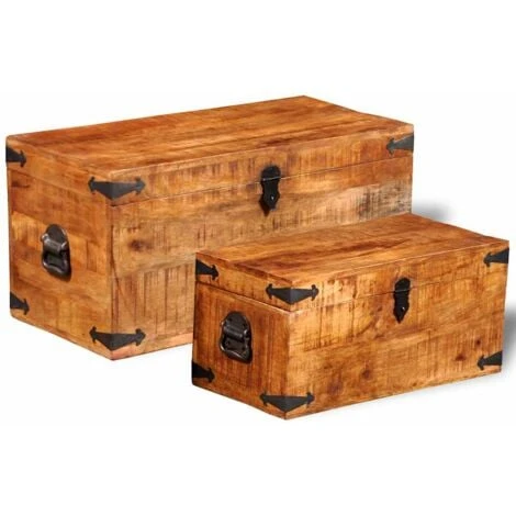 Cet ensemble de 2 coffres de rangement en bois de manguier brut, un accessoire intemporel pour votre maison, vous donnera amplement d’espace de rangement et vous aidera à garder vos affaires en ordre.