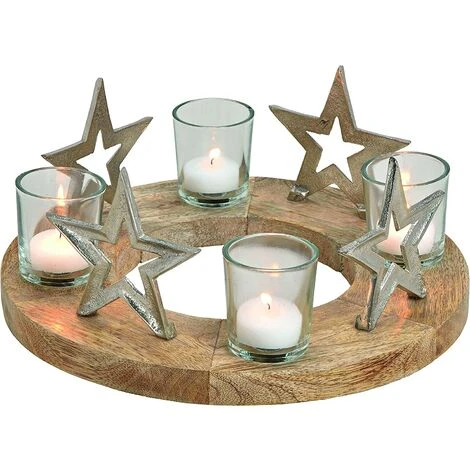 Soyez le premier à laisser votre avis sur “Couronne De L’Avent, Bougeoir De Noël, Socle En Bois De Manguier, étoiles Argentées (L/H/P) 30x12x30cm” Annuler la réponse