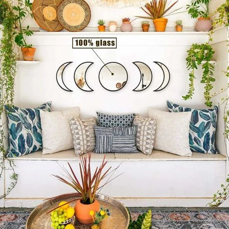 Décor Naturel Scandinave, Miroir De Phase De Lune En Verre, Design D’intérieur Miroir De Phase De Lune En Bois Décoration Murale Bohème Pour Chambre (noir)