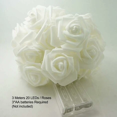 ALIMENTÉ PAR BATTERIE: Roses LED guirlande lumineuse Fonctionne avec 2 x AA (non incluses), pratique et sûr à utiliser. Ces Lumières à LED Rose brillent d’un blanc chaud et créent une atmosphère de rêve. 20LEDs guirlande lumineuse, longueur 3M. Afin de créer un meilleur environnement, il est recommandé d’acheter 2 LED guirlande lumineuse de rose ou plus