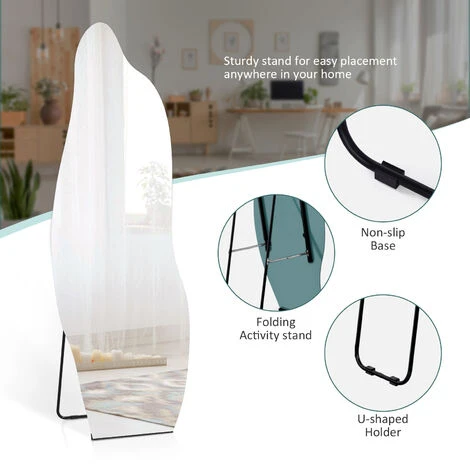 Il brise le miroir rectangulaire traditionnel sur toute la longueur. Le miroir sur pied de forme irrégulière est créatif et audacieux dans sa conception, apportant