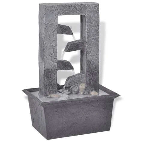Cette fonction d’eau qui ruisselle va compléter tout décor. Elle est éclairée par lumière LED, ce qui rend un effet visuel magnifique, surtout pendant la nuit. Construite en poly-résine, elle est résistante aux UV, ce qui signifie qu’elle va maintenir son aspect et sa couleur lorsqu’elle est placée en plein soleil. Plusieurs ruisseaux d’eau coulent et le bruit apaisant de l’eau qui ruisselle créent une atmosphère relaxante et méditative. La pompe de haute qualité incluse assure un fonctionnement sûr et fiable.