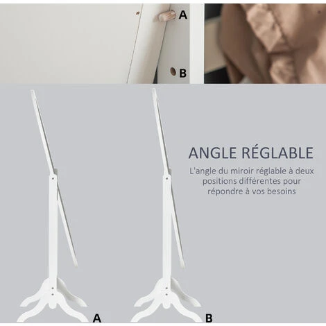 – Grand miroir frontal avec inclinaison réglable à 2 niveaux vous permettant d’essayer de façon pratique vos bijoux ou accessoires suivant votre tenue