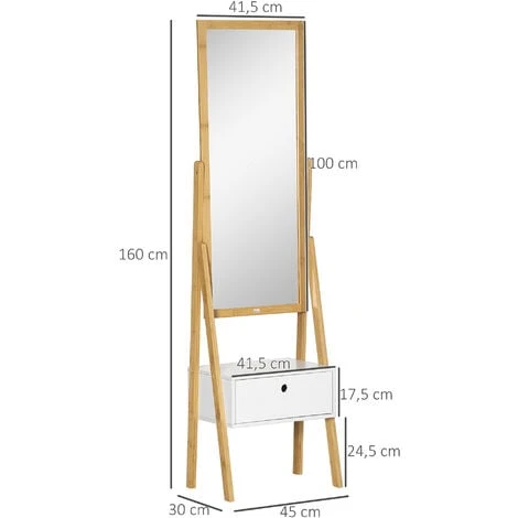 – Dim. miroir : 41,5I x 100H cm (avec cadre), 35,4I x 94H cm (sans cadre)