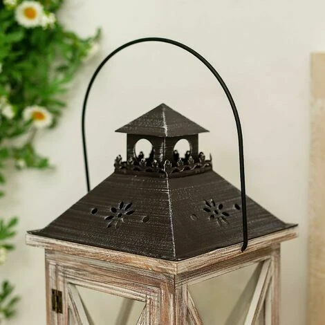 Lanterne rustique : lanterne en bois rustique, bois blanc vieilli, dessus en métal vieilli, loquet en laiton, pour une décoration élégante de lanterne