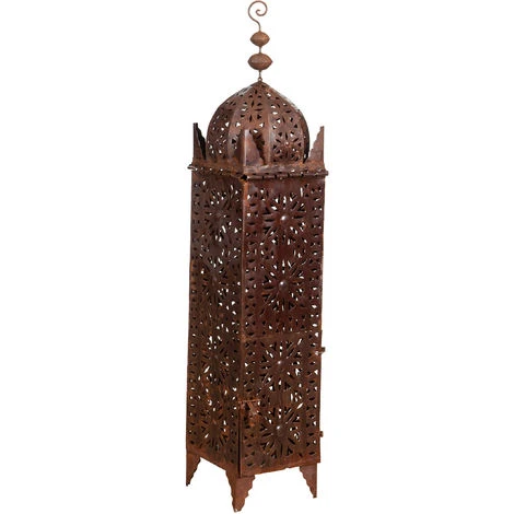 Lanterne d’origine en fer forgé perforé finition naturelle avec dimensions longueur 40 cm, profondeur 40 cm, hauteur 130 cm. Il peut être utilisé comme lampe de table ou lampadaire et comme bougeoir mais aussi comme lustre s’il est suspendu au plafond. La structure particulière de la lanterne crée une atmosphère évocatrice qui donne à la maison et au jardin le charme des nuits orientales, l’effet de la finition naturelle du fer et les jeux d’ombre et de lumière projettent des reflets chauds dans les murs de vos pièces. Ce sont des objets uniques et caractéristiques qui, cependant, s’adaptent à n’importe quel coin et contexte de n’importe quel environnement.