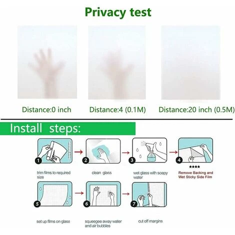 - La protection de la vie privée: Conception givrée de haute qualité film fenetre anti regard , à 0,5 mètre de distance l’effet de la protection de la vie privée peut être supérieur à 98%, tout en laissant passer la lumière.
