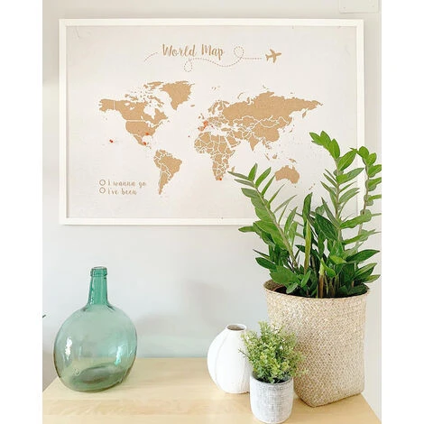 - Carte du monde sérigraphiée sur feuille de liège de 3 mm d’épaisseur.