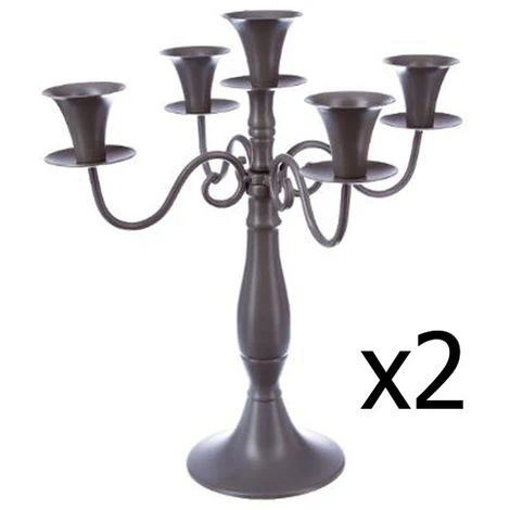 Lot De 2 Bougeoirs En Métal Gris De 5 Têtes, H36 X D30 Cm -PEGANE-
