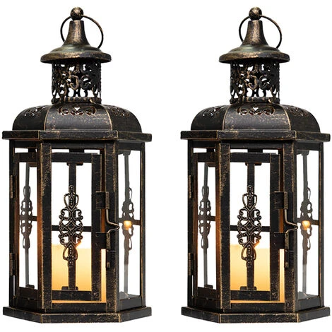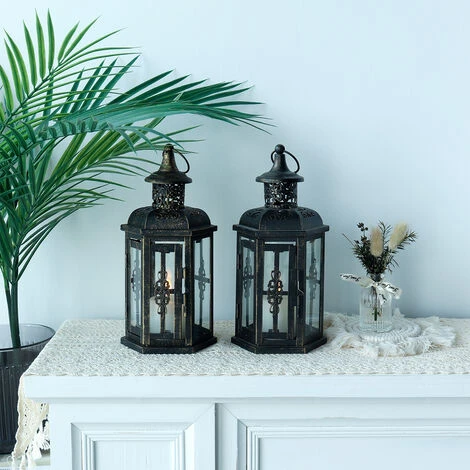 La lanterne à bougie vintage, avec des vitres en verre, un dessus spécial et un cadre à motif vieilli par du noir avec un poudrage au pinceau doré. Il peut utiliser des bougies chauffe-plat, votives ou de petites bougies piliers jusqu’à 7,5 cm x 10 cm. Il a un anneau de suspension pour une suspension facile ou repose sur une surface plane. Ces lanternes constituent un excellent accent de décoration intérieure ou une pièce maîtresse pour de nombreux styles et thèmes différents.