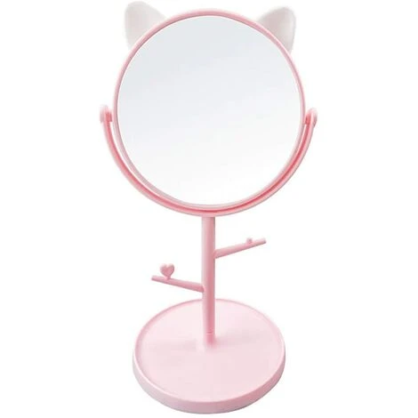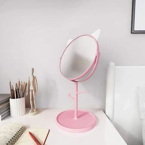 Miroir De Bureau En Forme D’oreilles De Chat Mignon – Miroir De Maquillage Et De Courtoisie Pour Vous Dans La Salle De Bain Ou La Chambre – Rose Joli Miroir De Maquillage Rotatif Avec Décor En Forme