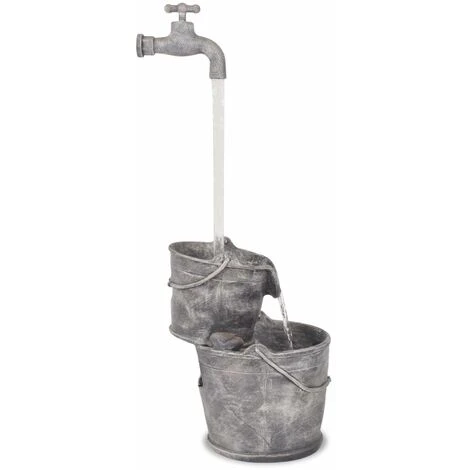 Ce dispositif d’eau unique et autonome a un design élégant qui fait ressembler à un robinet coulant remplissant deux seaux de style antique et sera un excellent supplément décoratif à votre espace de vie intérieur ou extérieur ! Cette fontaine est faite de polyrésine et dispose d’un tube transparent qui relie les seaux et le robinet. Actionnée par la pompe, l’eau sera poussée vers le haut et s’écoulera le long de l’extérieur du tube, faisant le robinet semblent flotter. La pompe de haute qualité incluse assure un fonctionnement sûr et fiable. Ce dispositif d’eau entièrement autonome peut être placé n’importe où dans votre maison.