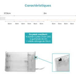 KOOPMAN Guirlande Lumineuse à Piles Corde Rope Blanc Chaud 30 LED