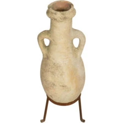 Ancienne Amphore Avec Anses En Terre Cuite Et Base De Vase En Fer