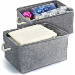 2 Pièces Paniers de Rangement Boîte Pliable en Tissu Lin Coton avec Poignées Tissées pour Bureau Maison Jouets Organisateur