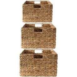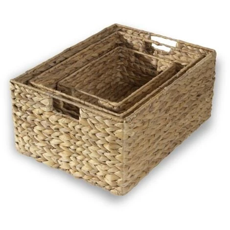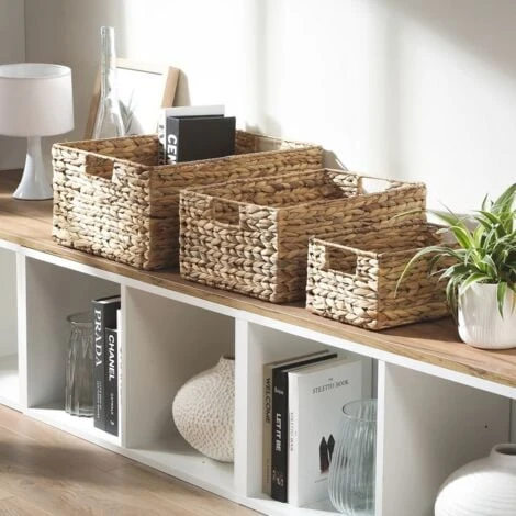 - Avec le lot de 3 paniers en jacinthe d’eau avec armature métal, profitez d’éléments de rangements esthétiques et contemporains qui donneront un look estivale à votre intérieur.