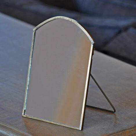 Une touche vintage pour votre déco de maison, ce miroir en fer patiné or est parfaitement stable grâce à son pied de soutient.