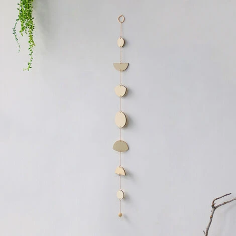 Matériaux : lune en bois de haute qualité et chaîne en fer avec finition dorée. Livré avec crochets et tubes d’extension, facile à installer et à accrocher au mur.