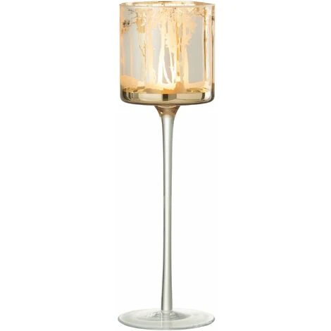 Photophore Sur Pied Arbres Verre Or Large H. 30cm