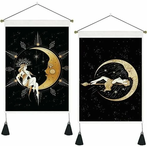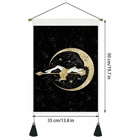 Taille parfaite : les dimensions du tapis lune sont de 35 x 50 cm. Cette taille s’intègre dans n’importe quelle pièce et offre d’excellents effets visuels. Chaque tapisserie est équipée de tiges et de cordes de suspension pour une suspension facile.