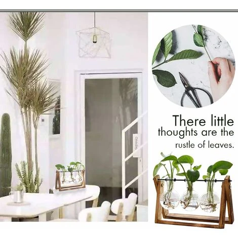 Plante Avec Support En Bois, Pot De Fleurs En Verre, Support Pivotant En Métal, Table Rétro Pour Culture Hydroponique, Maison, Jardin, Bureau, Décoration – Vase à 3 Ampoules