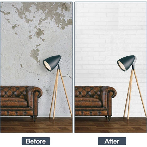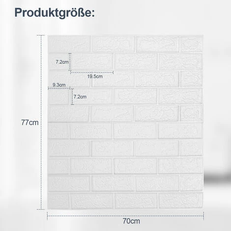 La taille d’un sticker mural est de 77 x 70 cm. Épaisseur : 3 mm. Vous recevrez un total de 10 papiers peints aspect pierre dans la livraison.