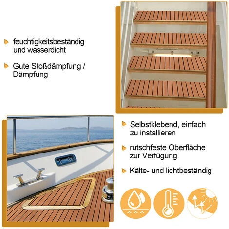 Facile à nettoyer : le tapis de pont est non absorbant, il est très facile de nettoyer la planche en teck EVA avec de l’eau ou un aspirateur.