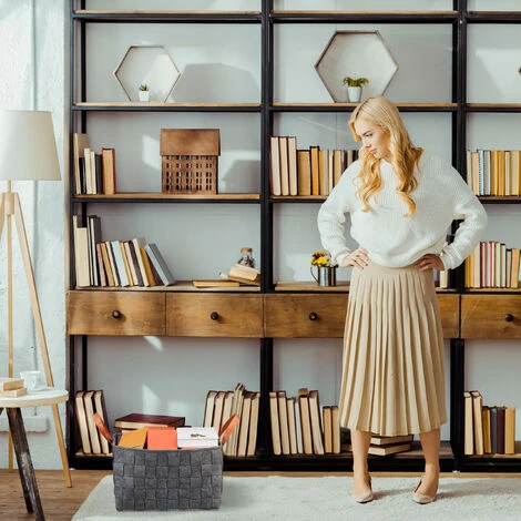 Ce panier en feutre vous donne un espace de rangement pratique et peut servir pour diverses utilisations. Le panier de rangement est idéal pour le rangement des produits de toilette, jouets, bricolage, buches de cheminée et autres objets. Le design élégant simple et moderne avec optique tresse se fond facilement dans chaque pièce, que ce soit la salle de bain, chambre d’enfants ou encore le salon. Le sac en tissu peut être facilement plié et stocké sans prendre de place si vous n’en avez plus besoin.