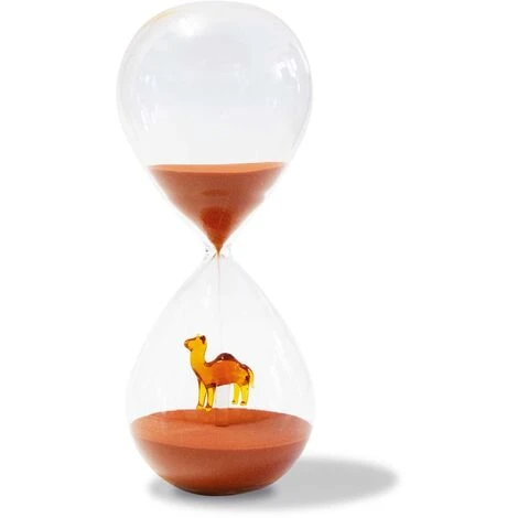 Sablier en verre borosilicaté avec sujet en verre interne. Durée 30 min. décoration : Chameau.