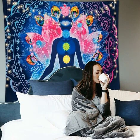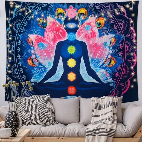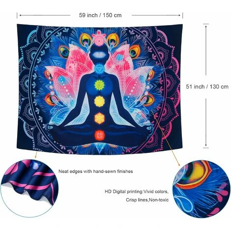 UTILISATIONS MULTIPLES: Cette tapisserie de méditation de lotus unique est parfaite comme tenture murale pour la chambre à coucher, le salon, elle peut également être utilisée comme couvre-lit, housse de canapé, nappe, couverture de pique-nique, tapis de yoga, décoration de plafond, rideaux de fenêtre. Également un cadeau parfait pour votre famille ou vos amis.
