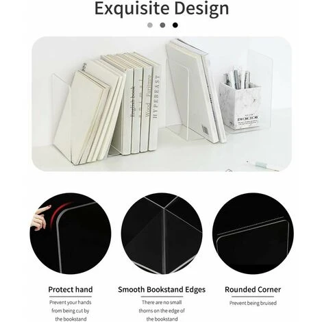 Serre-livres transparents – Les serre-livres transparents sont polis, avec des surfaces lisses, des coins arrondis et sans arêtes vives.