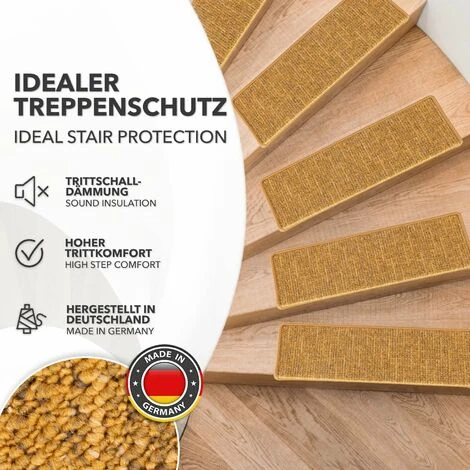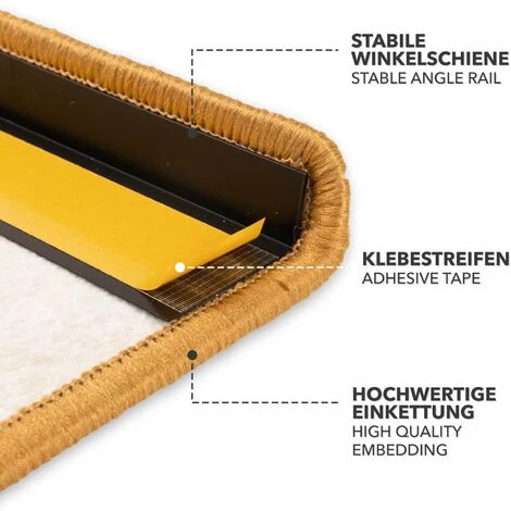 Quels sont les produits qui offrent encore aujourd’hui une combinaison imbattable d’esthĂ©tique, de prix et de qualitĂ© qui ne déçoit pas ? Nos tapis d’escalier Alto vous facilitent la tâche. Ils constituent une solution optimale pour vos marches d’escalier. Après l’achat et la livraison, vous n’avez pas Ă vous soucier d’un temps de montage inutilement long. Grâce Ă une cornière robuste et Ă des bandes adhĂ©sives, la fixation se fait en un tour de main. De mĂŞme que le choix des tapis fabriquĂ©s en polypropylène robuste rĂ©siste sans problème aux influences quotidiennes, les bordures en chaĂ®ne protègent contre l’effilochage progressif.