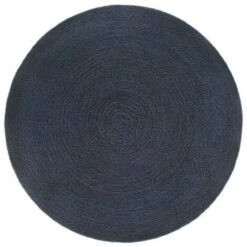 Tapis Tressé Tapis De Salon Tapis D’entrée Réversible Bleu Marine Et Naturel 90 Cm Jute Rond 87429