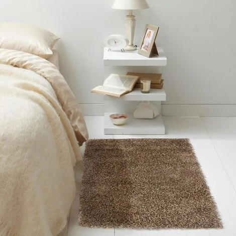 Tapis shaggy marron au toucher ultra doux et d’une brillance éclatante. Cette descente de lit apportera un côté douillet et cosy à votre chambre, pour des matins tout en douceur !