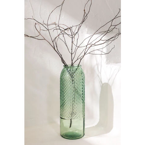 Le verre est un matériau très polyvalent que vous pouvez facilement adapter avec n’importe quel style décoratif. Le vase en verre recyclé Dinte est l’accessoire décoratif de style vintage par excellence que vous pourrez combiner avec d’autres de forme et de couleurs différentes, même avec d’autres matériaux tels que l’acier ou le bois. Il est composé à 100% de verre recyclé, il a donc un impact environnemental moindre. Apportez une touche de luminosité et de sophistication à votre intérieur, en utilisant ce matériau, et créez une atmosphère romantique en jouant avec la lumière et en innovant dans le contraste et la composition. Nous déconseillons d’utiliser des produits chimiques pour le nettoyage. Dimensions (Hauteur x Largeur x Profondeur): 44 cm x 15 15 cm x 15 cm IMPORTANT : Le service standard porte-à-porte ne comprend pas la livraison et la collecte des marchandises au domicile du client, qui sont à la charge de ce dernier. Il est possible que le livreur aide volontairement à la livraison de la marchandise (ceci est totalement volontaire pour le livreur et la société de transport et ne relève pas de la responsabilité de Sklum).L’assemblage n’est pas non plus inclus.