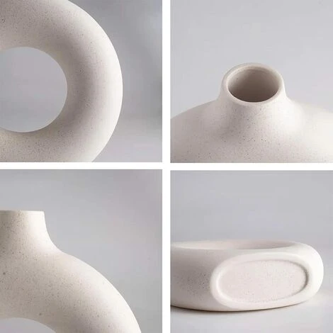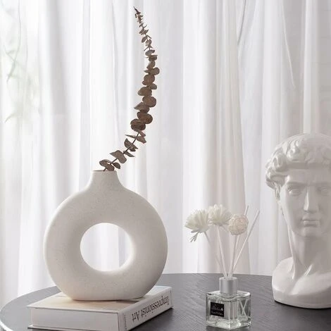 Vase beignet moderne : remplissez de fleurs séchées, d’herbe de pampa ou de feuilles d’eucalyptus pour une touche moderne dans votre salon.